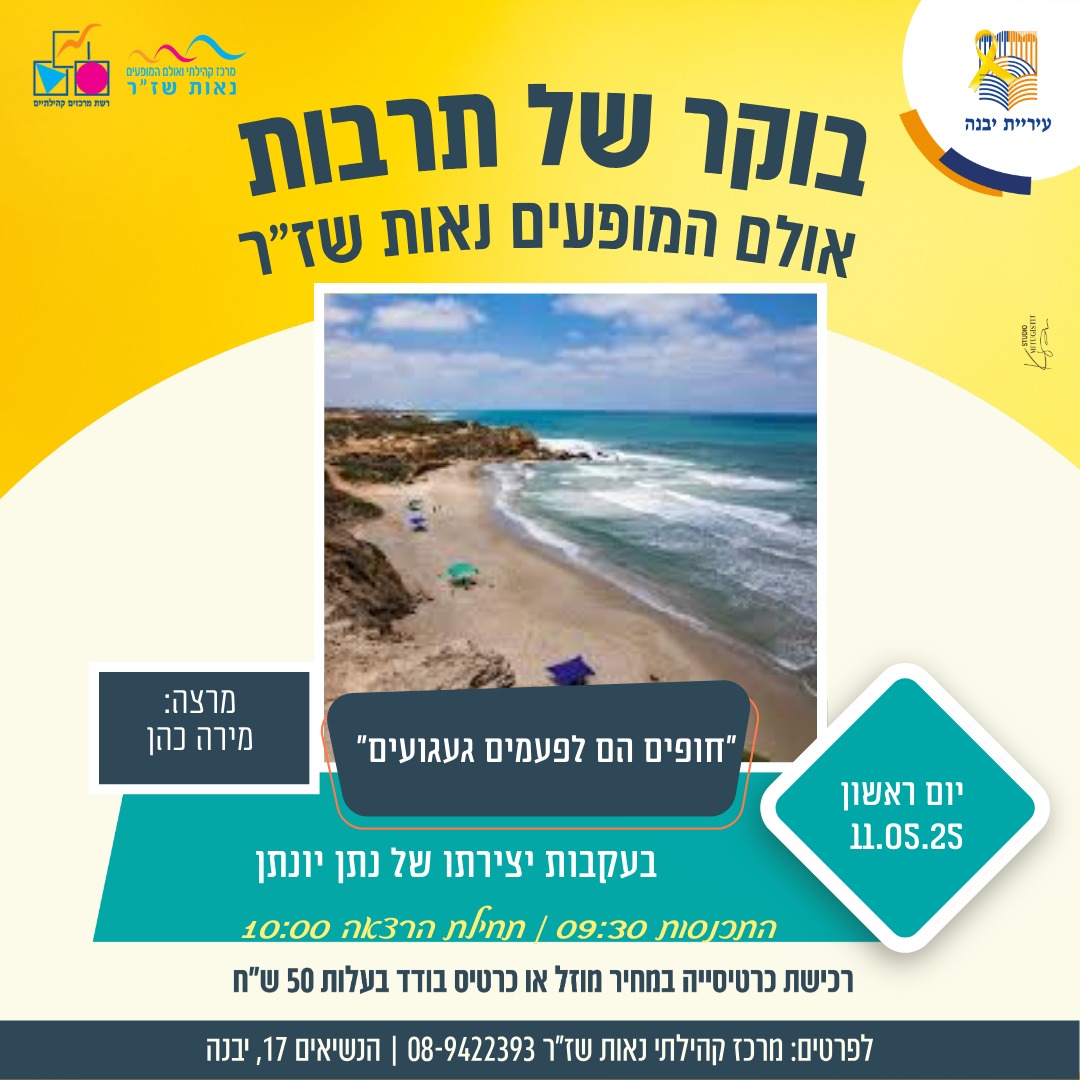 יום ראשון 11.5.25 שעה 10:00 במתנ"ס שזר יבנה הרצאה:'נתן יונתן – חופים הם לפעמים געגועים'