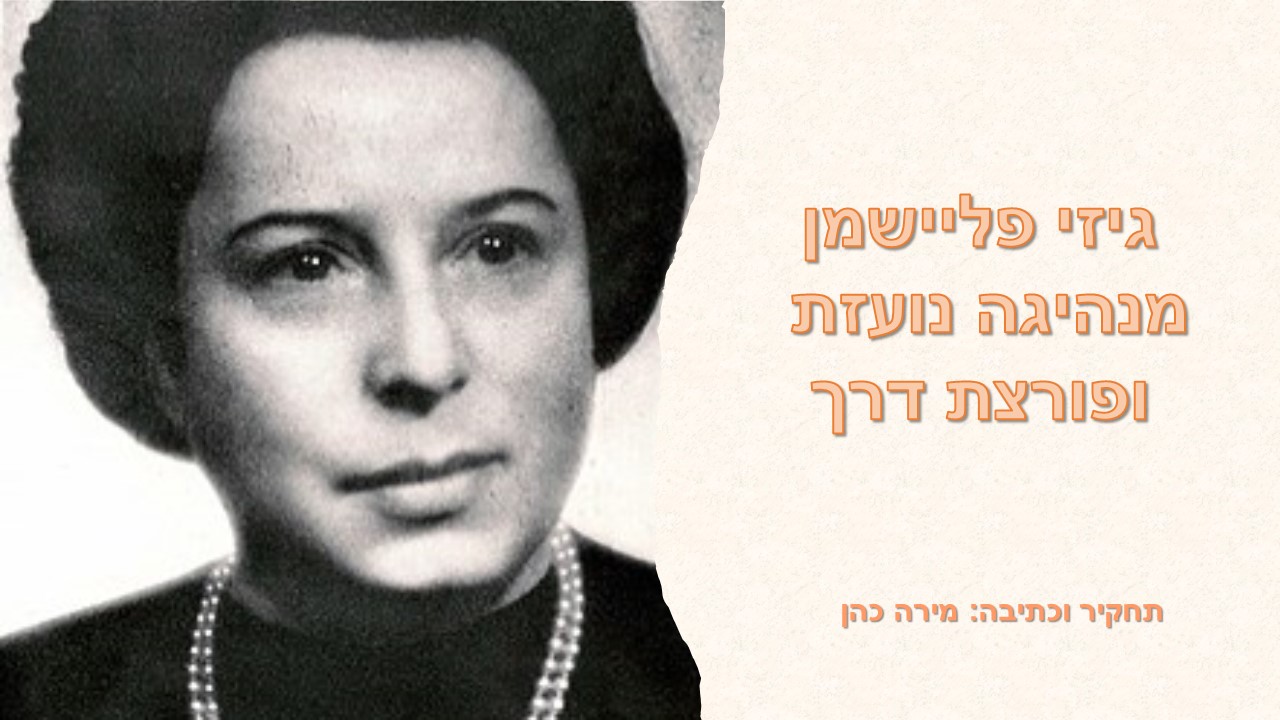 גיזי פליישמן, אשת ציבור רבת־השפעה, כיהנה כיו"ר ארגון נשות ויצ"ו וכנציגת הג'וינט בסלובקיה. בתקופת מלחמת העולם השנייה היא הפכה למנהיגה יוצאת דופן, שהצליחה לאחד סביב שולחן אחד גברים ונשים, חרדים וחילונים, במסגרת קואליציה נדירה שכונתה "קבוצת העבודה".במנהיגות נחושה ובחזון אמיץ,…